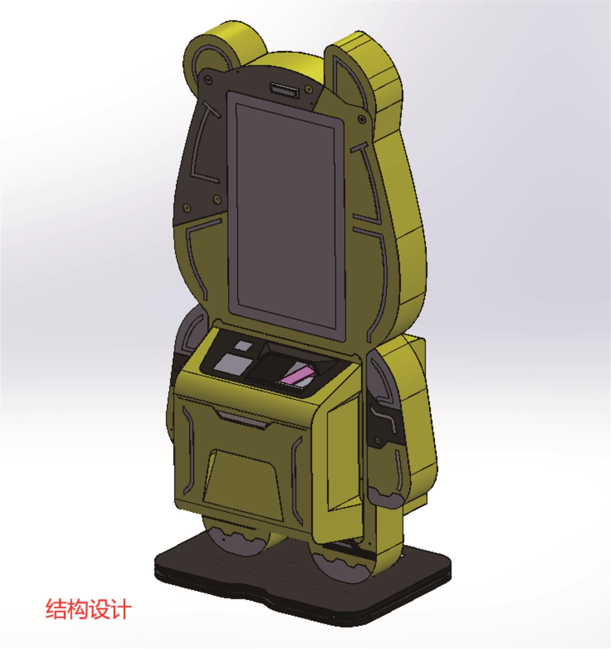 根据客户提供的创意想法需求,设计外观优化,拟物化的造型设计托比狗,融合形态造型,融入机器外观设计语言,结构设计,工程图制作一体,设计造型外观大气,整洁,客户满意,并实施了批量交付过程。